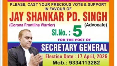 - आप सभी अधिवक्ता से अपील है कि मतदान सीरियल नंबर 5 पर सभी अधिवक्ता मतदान करने की कृपा करें ताकि आप सभी का सहयोग प्राप्त होगा और मैं सभी लोग को कल्याण करने की कोशिश रहेगी ll