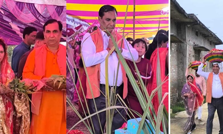 बाबु धाम ट्रस्ट की अध्यक्षा मंजूबाला पाठक एवं संस्थापक ए.पी. पाठक ने अपने मातृभूमि चंपारण में मनाया महापर्व छठ