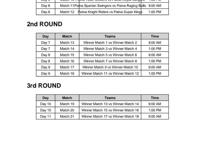 पटना जिला में आयोजित होने वाले बिहार रुरल लीग की टाई-शीट जारी कर दी गई है।