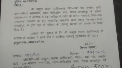 अधिवक्ता एवं उनके परिवार सदस्यों पर फर्जी एससी-एसटी केस मामले पर पुलिस अधीक्षक समस्तीपुर कार्रवाई करें:-नवल किशोर शाही। (समस्तीपुर)…