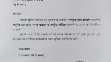 नमस्कार प्रिंट एवं इलेक्ट्रॉनिक मीडिया के साथियों को सूचित करना है कि राष्ट्रीय लोक मोर्चा के राष्ट्रीय अध्यक्ष एवं राज्यसभा…