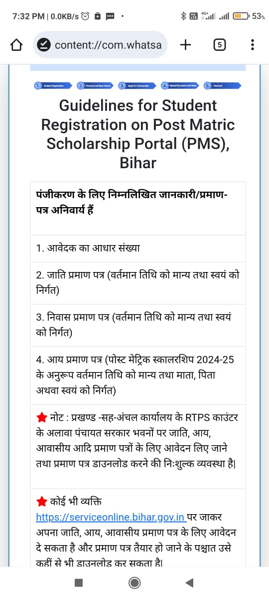 On Line छात्रवृति फार्म भरने के लिए अधिक जानकारी हेतु खोलकर देखें।
