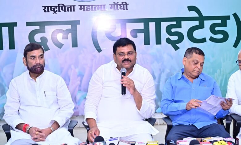 मंगलवार को जद (यू) प्रदेश कार्यालय, पटना के कर्पूरी सभागार में पार्टी के मा0 प्रदेश अध्यक्ष श्री उमेश सिंह कुशवाहा ने संवाददाता सम्मेलन को संबोधित करते हुए श्री निशांत कुमार की पश्चिमी चंपारण की धरती से शुरू होने वाली ऐतिहासिक ‘‘सद्भाव यात्रा’’ की घोषणा की। इस अवसर पर पार्टी के मा0 विधानपार्षद श्री ललन कुमार सर्राफ, मा0 विधानपार्षद श्री संजय कुमार सिंह उर्फ गांधी जी, राष्ट्रीय सचिव सह प्रवक्ता श्री राजीव रंजन प्रसाद, मा0 विधानपार्षद सह मुख्य प्रवक्ता श्री नीरज कुमार, प्रो. नवीन आर्य चंद्रवंशी, डाॅ0 अमरदीप एवं श्री वासुदेव कुशवाहा उपस्थित रहे