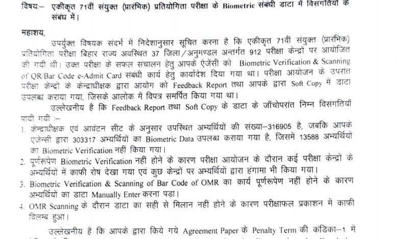 विवाद की जड़ में बायोमेट्रिक सत्यापन का ठेका ‘साईएजुकेयर (SaiEducare)’ को दिया जाना है। यह वही कंपनी है, जिसे पहले राष्ट्रीय परीक्षा एजेंसी (NTA) द्वारा ब्लैकलिस्ट किया जा चुका है। इसके अलावा, बिहार लोक सेवा आयोग (BPSC) भी इस कंपनी को पूर्व में कारण बताओ नोटिस जारी कर चुका है, क्योंकि इसने एक परीक्षा में लगभग 13,000 अभ्यर्थियों का बायोमेट्रिक सत्यापन नहीं किया था।