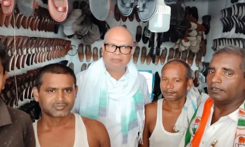 चमड़ा कारीगरों से मिले प्रदेश कांग्रेस अध्यक्ष राजेश राम, कारीगरों ने राजेश राम को भेंट की संविधान की प्रति
