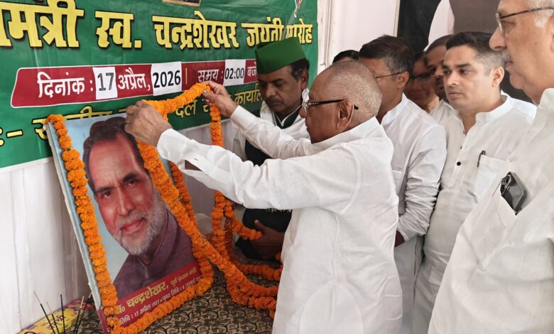 आज राष्ट्रीय जनता दल के राज्य कार्यालय में समाजवादी नेता, पूर्व प्रधानमंत्री एवं युवा तुर्क स्वर्गीय चन्द्रशेखर जी की जयन्ती मनायी गयी। इस अवसर पर चन्द्रशेखर जी के तैलचित्र पर माननीय प्रदेश अध्यक्ष श्री मंगनी लाल मंडल सहित उपस्थित नेताओं ने माल्यार्पण कर उनके प्रति श्रद्धांजलि अर्पित की।
